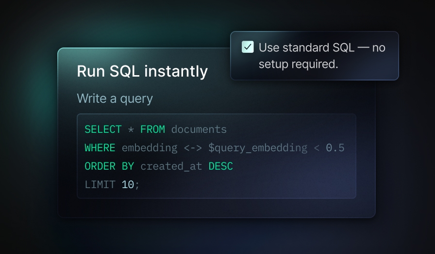 Neon supports standard SQL, integrates easily into your stack, and reduces time-to-value for production RAG systems.