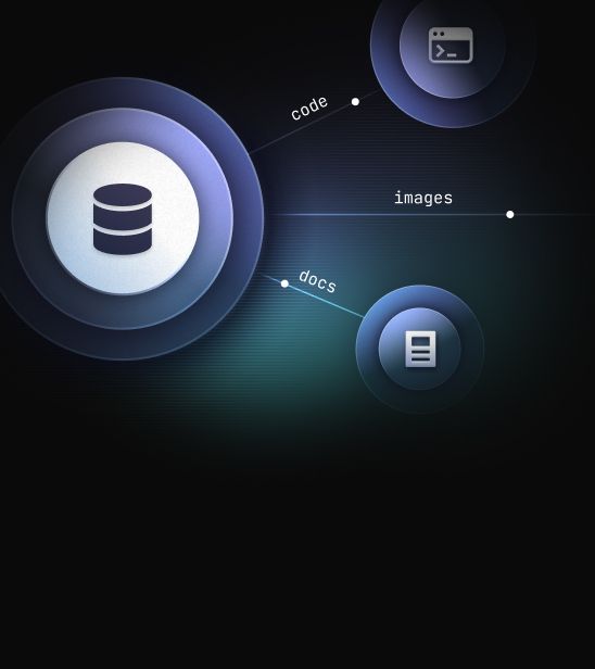 Combine vector search, full-text search, relational data, and SQL analytics in a single system. No glue code between databases.